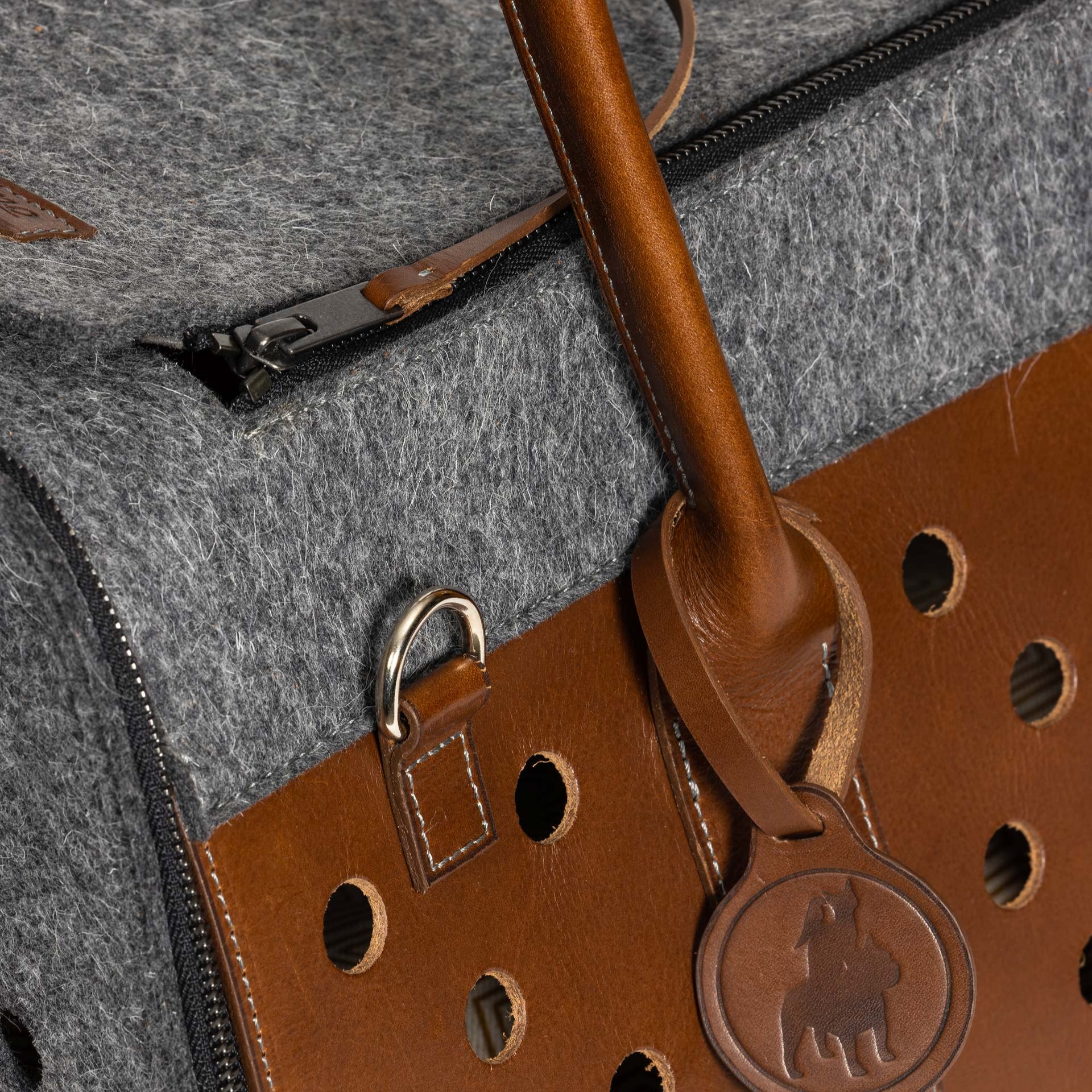 Sac de voyage en cuir et feutre pour chien et chat